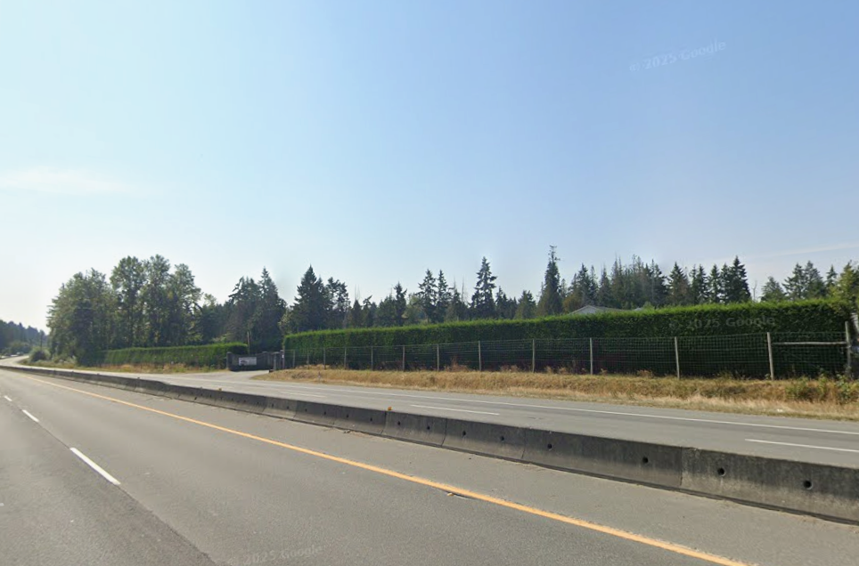 On your right, your first clue to pull over is a small pullout area, you won’t use this one but this means you’re almost there. You’ll see the start of our hedges.