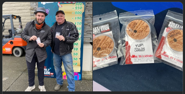 Genuine Collectibles Inc would like to thank our amazing team of specialist who efficiently, safely and with extreme precision dismantled and transported the World’s Largest Hockey Stick and Puck from its location in Duncan, British Columbia, to it’s new home at Maxwell’s Auto Center